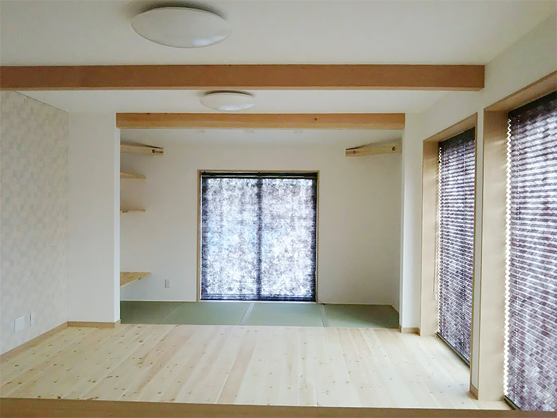 内装はヒノキのフローリングで、部屋全体が明るく温もりを感じられる住宅です。